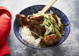 Mongolian Beef is actually a dish from Taiwan and is often served in Canadian-style Chinese restaurants. Usually made with Flank Steak, this recipe with Beef Rib Finger Meat makes a wonderful and flavourful substitute. Cooking the beef in a pressure cooker means this braise cooks in a fraction of the time. You could also serve this saucy beef over rice noodles, cellophane noodles or ramen noodles instead of rice.