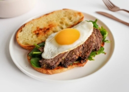 Make the most of any leftover tenderloin the next day in a simple roast beef sandwich. Tender baby arugula dressed with fresh lemon juice and olive oil, and Dijon mustard as the spread for the toast are a good match for tasty beef tenderloin. A fried egg crowns each sandwich and helps to hold it all together!