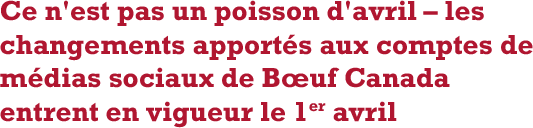 ![]() Les abonnés qui suivent Bœuf Canada sur les réseaux sociaux ont peut-être remarqué des changements récents sur les comptes X et Facebook, apportés afin de mieux servir les éleveurs de bovins de boucherie au Canada. Le 1er avril, Bœuf Canada a fusionné ses deux comptes X pour devenir @CanadaBeefInc, spécialement conçu pour les producteurs de bœuf et les intervenants de l'industrie. En outre, la supervision de @CanadaBeefInc et du canal Facebook des producteurs @CanadaBeefInc a été transférée au service de communication avec les intervenants de Bœuf Canada. Les médias sociaux sont un domaine d'intérêt clé pour Bœuf Canada, qui cherche à favoriser un engagement significatif et un discours réfléchi avec les abonnés. Le transfert de la gestion des canaux de médias sociaux des producteurs aux Communications avec les intervenants permettra de répondre aux besoins uniques des producteurs et des intervenants en matière d'information sur ces plateformes. Le contenu de @CanadaBeefInc se concentrera sur des informations pertinentes pour les intervenants et des mises à jour opportunes sur les activités en cours chez Bœuf Canada pour augmenter la demande de bœuf canadien au pays et à l'étranger tout en assurant une valeur maximale pour les dollars des producteurs. Les images iront des activités et événements de Bœuf Canada aux photos panoramiques à la ferme et plus encore.La combinaison d'informations et d'images sur ces comptes sera affinée au fil du temps afin d'assurer une pertinence continue auprès de ces abonnés. N'oubliez pas de nous suivre sur @CanadaBeefInc sur X et Facebook pour obtenir les dernières informations. Retour à la page d'accueil ![]() GINA TEEL Directrice des communications avec les intervenants |