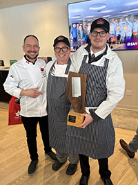 ![]() Le CEBC soutient la compétition « Cut and Cook » (Couper et cuisiner) du SAIT Le 28 février 2026, l'équipe du Centre d'excellence du bœuf canadien (CEBC) s'est jointe au Southern Alberta Institute of Technology (SAIT) à l'occasion d'une journée portes ouvertes consacrée à son programme d'arts culinaires et de boucherie. L'événement comprenait une compétition pratique qui a permis aux futurs étudiants de découvrir de près les métiers de l'hôtellerie et de la découpe de viande en action. Il a également mis en lumière l'engagement continu du CEBC en faveur du développement des compétences dans les domaines de la cuisine professionnelle et de la découpe de viande en magasin. Cinq équipes de deux personnes ont participé à la compétition, chacune composée d'un étudiant en arts culinaires du SAIT et d'un étudiant du programme de gestion de la boucherie et de la charcuterie. Pour l'épreuve de découpe de viande du concours, les équipes devaient établir une liste de produits découpés en portions et prêts à la vente à partir de quatre pièces de viande sous-primaires. Elles devaient ensuite présenter des roulades finement tranchées issues de l'intérieur de ronde et préparer ce plat classique. Le jury était présidé par l'équipe du CEBC de Bœuf Canada — composée du directeur général Mathieu Paré et du directeur du studio Cameron Pappel —, aux côtés de Don Cyr, ancien formateur en découpe de viande pour la vente au détail et chef à la Saskatchewan Polytechnic. Les élèves des programmes d'arts culinaires et de boucherie ont démontré leur savoir-faire, de la découpe à l'assiette. Félicitations aux lauréats de cette année, Tristan Skaar et Patrick Creery. Le CEBC participe à des événements éducatifs destinés aux étudiants afin de susciter leur intérêt pour les débouchés professionnels dans les métiers de la cuisine et de la boucherie. Ces événements permettent également de nouer des partenariats avec le SAIT et de promouvoir le bœuf canadien sur les réseaux sociaux, dans le but d'encourager l'engagement et l'intérêt pour les programmes, les services et les ressources du SAIT et de Bœuf Canada. Retour à la page d'accueil ![]() ![]() CAMERON PAPPEL Directeur, studios du Centre d'excellence du bœuf canadien MATHIEU PARÉ Directeur exécutif, Centre d'excellence du bœuf canadien |