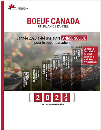 ![]() Le rapport annuel 2023-2024 de Bœuf Canada est maintenant disponible dans une gamme de formats pour répondre aux besoins des intervenants. Disponible en anglais et en français, le rapport annuel peut être consulté en ligne en format PDF et en livre numérique (anglais) ainsi que dans le format traditionnel imprimé. ![]() Une vidéo de cinq minutes présentant les principaux faits saillants de l’exercice 2023-2024 est également disponible sur la chaîne YouTube de Bœuf Canada .Veuillez jeter un coup d’œil et nous faire part de votre opinion sur cette nouvelle fonctionnalité du rapport annuel à [email protected]. La version vidéo du rapport annuel a été présentée pour la première fois lors de l'assemblée générale annuelle (AGA) de l'Agence canadienne de prélèvement du bœuf, le 20 août, à l'occasion de la Conférence de l'industrie canadienne du bœuf (CICB) à Saskatoon. La vidéo, qui fait partie du rapport officiel du président de Bœuf Canada, Éric Bienvenue, à l'Agence, a été bien accueillie par les participants à la conférence et les invités. Des copies imprimées du rapport annuel sont également disponibles et la distribution aux associations nationales et provinciales des éleveurs de bovins et aux membres de la chaîne de valeur est en cours. Le rapport annuel fournit un compte rendu détaillé de toutes les activités entreprises par Bœuf Canada au cours de l'exercice 2023-2024 pour assurer la valeur de l'investissement du prélèvement des producteurs et du prélèvement à l'importation. Retour à la page d’accueil ![]() GINA TEEL Directrice, Communications avec les intervenants |