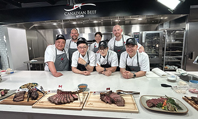 ![]() CBCE hosts celebrity delegation from South Korea Since the beginning of April 2025, the Canadian Beef Centre of Excellence (CBCE) has participated in seven professional association conferences, as well as industry stakeholder and consumer engagements. CBCE also hosted nine in-person export market buyer missions at the Centre, with additional events planned for September. These engagements aim to educate attendees about the Canadian Beef Advantage (CBA), highlight available resources and training tools, and promote the purchase of Canadian beef, including opportunity cuts and innovative product utilization. In August, in collaboration with the Government of Alberta and Destination Canada, the CBCE welcomed an incoming delegation from South Korea. The group included the Pullman Hotel Group Executive Chef Shin Jong-cheol and his culinary team along with well-known Korean actor, artist, and influencer Kim Kang-woo. During their visit, the culinary team learned more about the CBA and gained knowledge of various applications for Canadian beef cuts that will be featured during the upcoming hotel promotion at the Ambassador Seoul Hotel in September and October. ![]() CBCE delivered an engaging Canadian beef culinary program, featuring Chefs Mathieu Paré and Cameron Pappel cooking alongside the visiting chefs and celebrity guest. Each chef skillfully prepared dishes featuring Korean and Canadian ingredients and techniques. Featured Canadian beef products included short ribs, back ribs, finger meat, flat iron, chuck flap tail and boneless short plate. This demonstration provided content for Kim Kang-woo’s YouTube channel, which will be released in advance of the Canadian Ingredients promotion at The King’s, a premium live buffet restaurant located in the Ambassador Seoul Hotel. The event is expected to draw more than 10,000 guests per month. ![]() Back to main page ![]() ![]() CAMERON PAPPEL Director, Canadian Beef Centre of Excellence Studios MATHIEU PARÉ Executive Director, Canadian Beef Centre of Excellence |