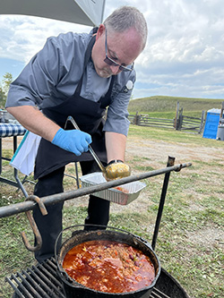 ![]() Rien ne symbolise mieux l'esprit cow-boy des pionniers que le concours Chuckwagon Chili Cook-off, surtout lorsqu'il est organisé en marge d'une compétition de chevaux de trait au site historique national Bar U Ranch, près de Longview, en Alberta. Le 21 septembre dernier, le chef Mathieu Paré, de Bœuf Canada, a organisé ce concours pour les membres de la Calgary Academy of Chefs and Cooks (CACC) et les étudiants en cuisine du SAIT au Bar U Ranch. Les équipes devaient préparer un chili à base de bœuf haché (ingrédient obligatoire) et selon des méthodes rustiques inspirées de la cuisine des chariots de ravitaillement, en référence aux profondes racines agricoles du Bar U. Fondé en 1882, ce ranch préservé est l'un des plus anciens de l'Alberta. Une visite guidée à pied des terrains et des expositions du Bar U, organisée avant le concours, a permis aux étudiants de découvrir ce site historique et le patrimoine culturel de l'élevage bovin au Canada. Les trois équipes de deux personnes participant à l'événement étaient composées d'un chef du CACC et d'un étudiant en cuisine du SAIT, et une équipe comptait deux étudiants du SAIT. Le concours a été jugé par les visiteurs du Bar U qui ont choisi leur chili préféré par vote (choix du public). Les gagnants de la première place étaient : James Haacke, chef exécutif au Sirocco Golf Course, assisté par Gwyn McKay, étudiante en arts culinaires au SAIT. ![]() Paré a déclaré que cet événement avait permis aux visiteurs et aux concurrents de participer à une activité sociale et éducative qui célébrait la cuisine locale et les saveurs du terroir. Le CACC et le Bar U Ranch ont pour objectif de faire de cette première collaboration culinaire un événement annuel. Merci au Bar U pour son accueil, ainsi qu'à l'Alberta Beef Producers (ABP), qui a soutenu le concours culinaire en prenant en charge le coût du bœuf haché. ABP et Bœuf Canada ont également offert des prix aux gagnants du concours. Par Gina Teel, directrice des Communications avec les intervenants et Mathieu Paré, directeur exécutif, Centre d'excellence du bœuf canadien Retour à la page d'accueil |