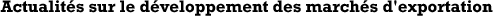 ![]() Trouvez les grands titres, des données actualisées, des renseignements stratégiques, des rapports de commerce et des statistiques sur l'exportation. Veuillez noter que les rapports et les statistiques de renseignements sur les marchés sont disponibles uniquement en anglais. En savoir plus |
