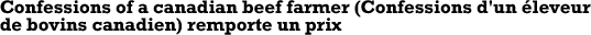 ![]() La Table ronde canadienne sur le boeuf durable s’est vue décerner un certificat de mérite dans le cadre des prix Best of Canadian Agri-Foods Marketing Alliance (CAMA) pour sa campagne Confessions of a Canadian Beef Farmer (Confessions d'un éleveur de bovins canadien). En savoir plus |