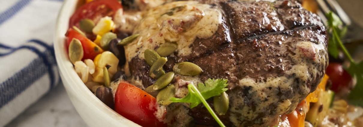 Grilled Veggie and Ground Beef Burger Bowl