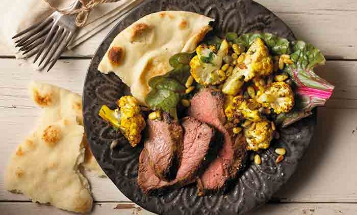 Tandoori Marinating Steak with Roasted Curried Cauliflower